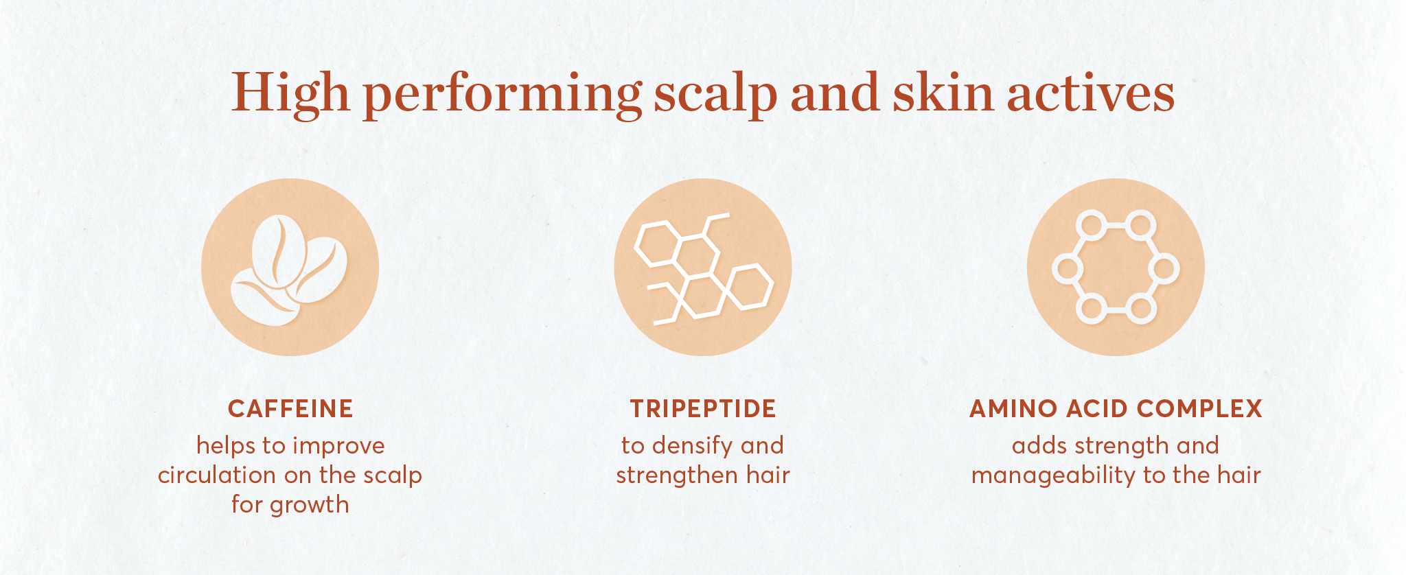- Peptides – Three amino peptides blend with Biotin to help densify & strengthen hair.